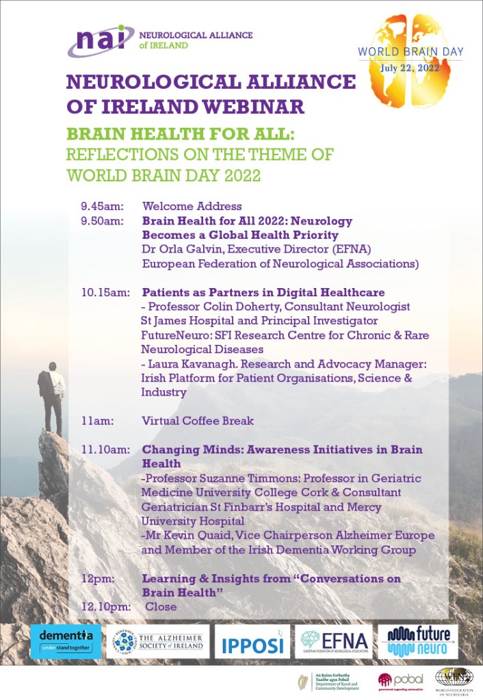 Neurological Alliance of Ireland webinar highlighting a range of initiatives which support and promote brain health takes place on Friday 22 July 2022