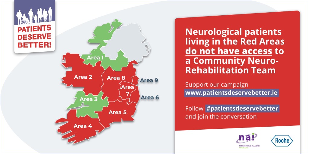 The Neurological Alliance of Ireland’s new Patients Deserve Better campaign calling for community neurorehabilitation teams to be put in place nationwide launches today. Only 15% of neurological patients in Ireland have access to a community neurorehabilitation team.